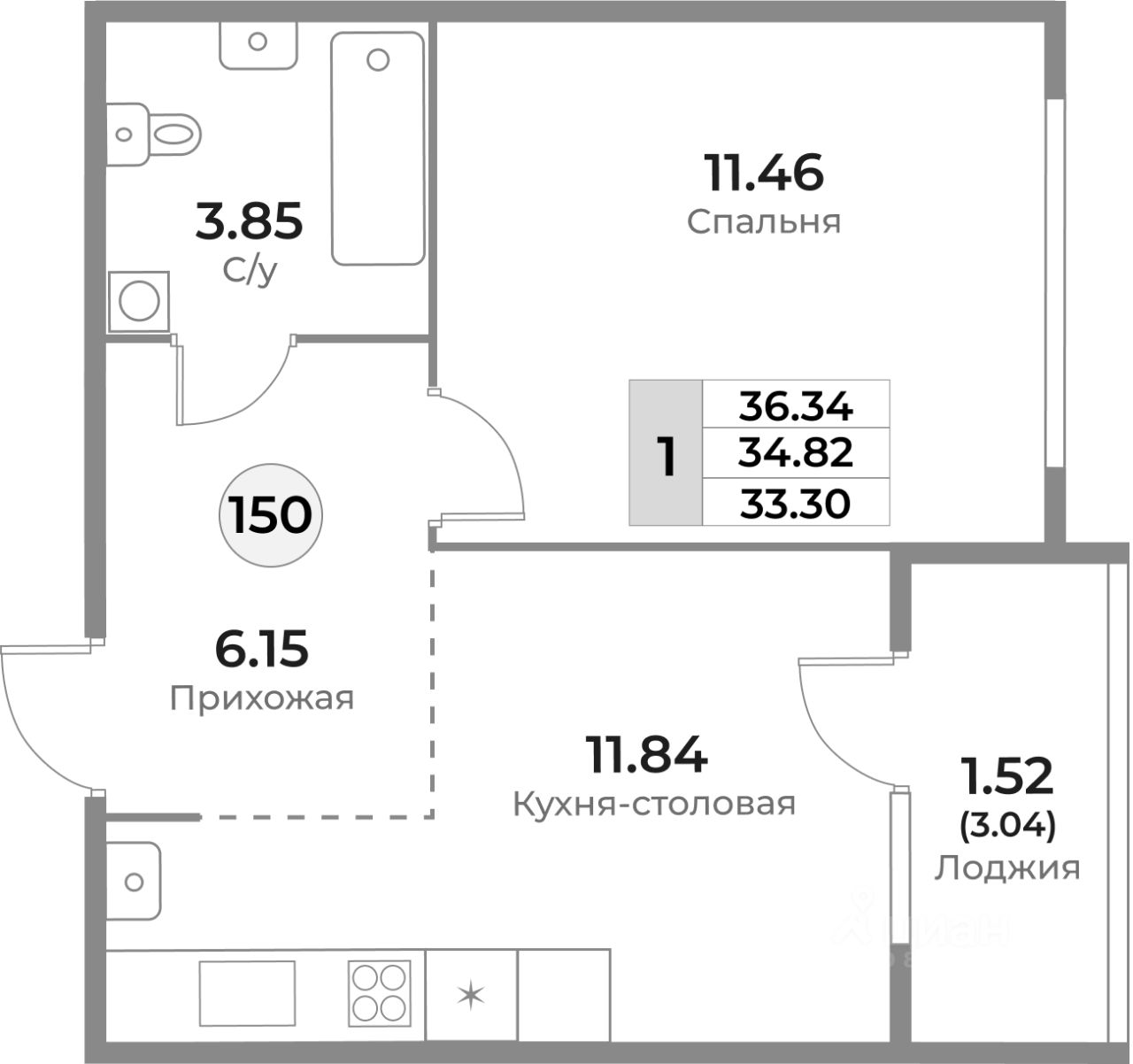 34 м² · Этаж 3 из 10