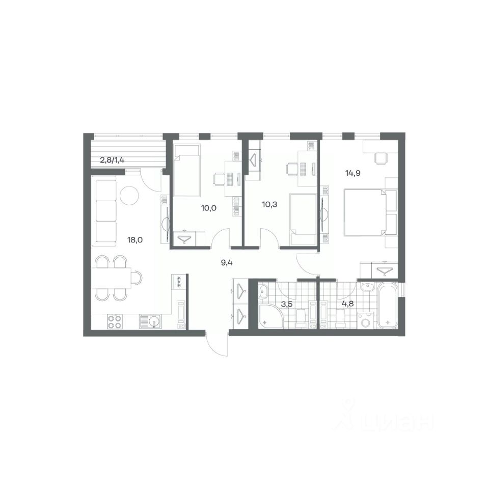 58 м² · Этаж 4 из 18