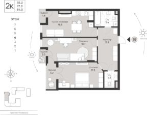 84 м2