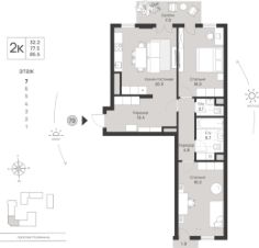 Продается квартира площадью 76.8 м² на 3 этаже 4 секции в Дом на Красной от компании ГК ''ТРЕСТ''. Площадь кухни 19 м². Жилой комплекс комфорт-класса ''Дом на Красной'' расположен в Центральном районе Калининграда на пересечении улиц Красная и Псковская. Жилой комплекс включает в себя два дома высотой 8 этажей. Срок сдачи намечен на 4 квартал 2026 года. Жилой комплекс ''Дом на Красной'' имеет среднюю комфортную этажность. Благодаря геометрическим формам, заложенным в архитектурный облик зданий, их конфигурация образует почти закрытую дворовую территорию. Фасад домов выполнен из комбинированных материалов (декоративная штукатурка и плитка под кирпич) в динамичном стиле с выступающими и утопленными частями и панорамными окнами. Архитектуру жилого комплекса подчеркивает декоративная подсветка фасада. В каждом подъезде созданы помещения для хранения колясок, велосипедов и спортинвентаря, которыми могут пользоваться все жильцы.Планировочные решения предусматривают квартиры с просторными кухнями-гостиными, мастер-спальнями и гардеробными. В квартирах, которые передаются покупателям без отделки (''Серый ключ''), предусмотрены открытые террасы с видом на Школьное озеро или красивый внутренний двор, панорамные окна, лоджии с холодным остеклением, потолки высотой 2,72 м. Для удобства автомобилистов созданы подземные паркинги: на 136 машиномест и кладовые помещения. В паркинг можно будет спуститься на лифте комфортно людям, безопасно автомобилям!