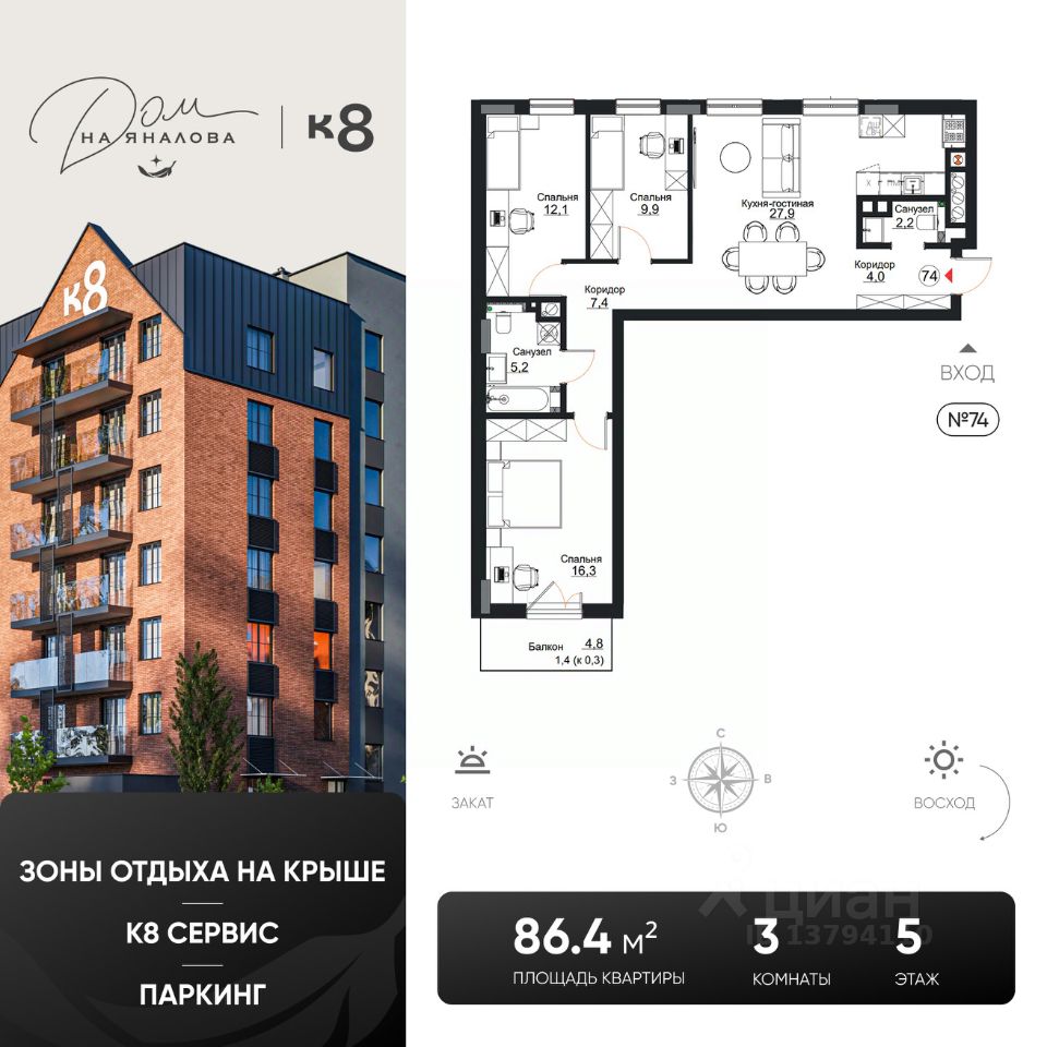 86 м² · Этаж 5 из 7