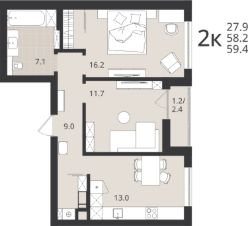 Продаётся 2-комнатная квартира в строящемся доме (Дом 3 (1 этап)), срок сдачи: II-кв. 2026, общей площадью 57.19 кв.м., на 9 этаже. Новый жилой комплекс ''11 Мая'' от застройщика ''ГК Модуль-Стройград'' расположен по адресу: г. Калининград, улица Согласия.