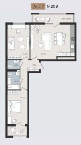 Продаётся 2-комнатная квартира в строящемся доме (Дом 4), срок сдачи: I-кв. 2027, общей площадью 62.27 кв.м., на 4 этаже. Новые жилые дома от Специализированного застройщика ''Самолет Калининград Плюс'' расположены в г. Калининград на ул. Советский проспект.
