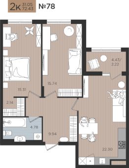 Продаётся 2-комнатная квартира в строящемся доме (Дом 4), срок сдачи: I-кв. 2027, общей площадью 78.61 кв.м., на 4 этаже. Новые жилые дома от Специализированного застройщика ''Самолет Калининград Плюс'' расположены в г. Калининград на ул. Советский проспект.