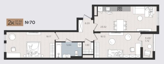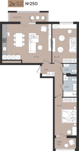 Продаётся 2-комнатная квартира в строящемся доме (Дом 4), срок сдачи: I-кв. 2027, общей площадью 80.14 кв.м., на 4 этаже. Новые жилые дома от Специализированного застройщика ''Самолет Калининград Плюс'' расположены в г. Калининград на ул. Советский проспект.