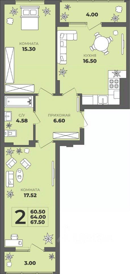 63 м² · Этаж 16 из 17