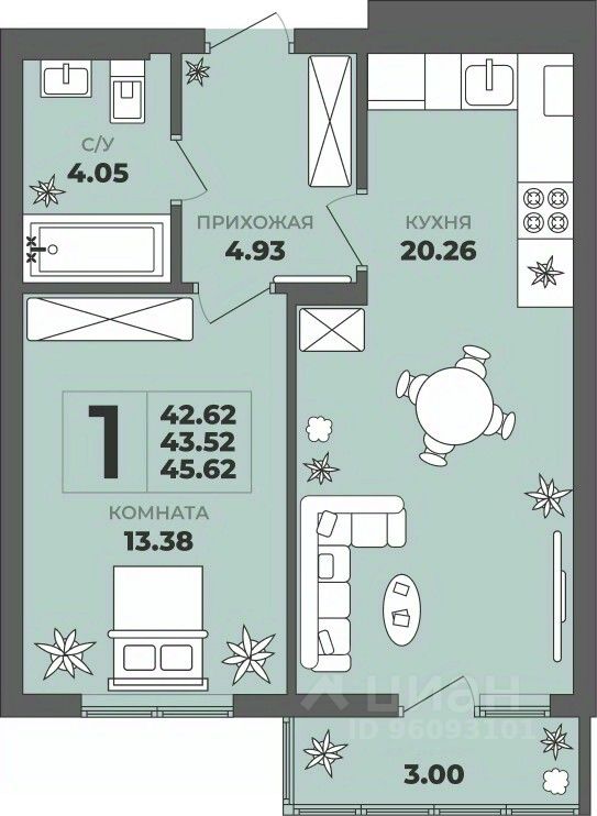 43 м² · Этаж 6 из 8