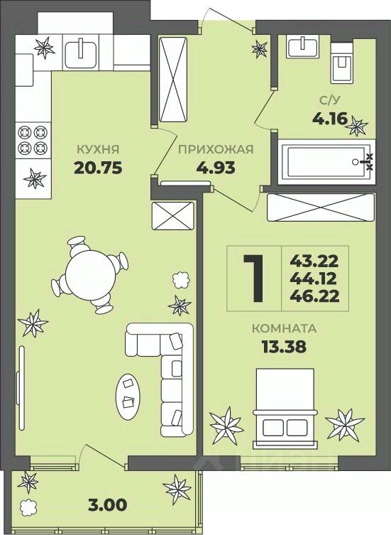 46 м² · Этаж 1 из 3