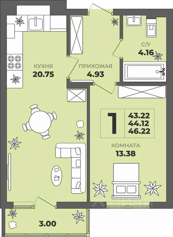 43 м² · Этаж 3 из 8