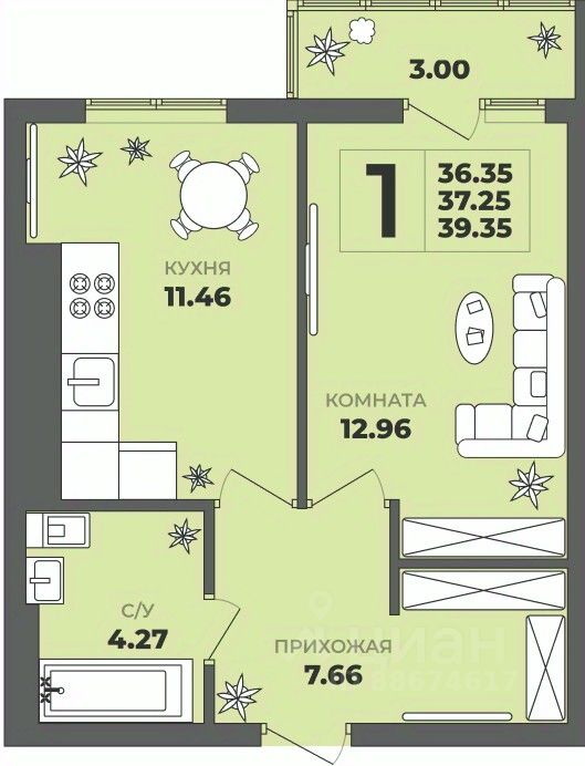37 м² · Этаж 6 из 8