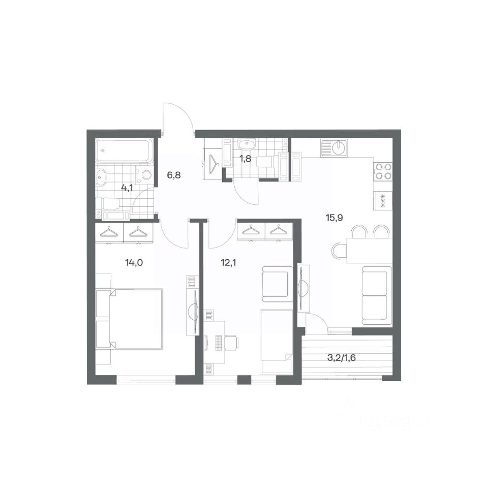 Продается квартира площадью 56.3 м² на 16 этаже 1 секции в Гагарина 30 от компании ГК ''ТРЕСТ''. Площадь кухни 15.9 м². Жилой комплекс комфорт-класса ''Гагарина 30'' расположен в Ленинградском районе Калининграда на улице Юрия Гагарина. Жилой комплекс включает в себя три корпуса высотой 9-18 этажей. Срок сдачи намечен на 1 квартал 2028 года. Жилой комплекс расположен в географическом центре города Калининград. Он знаменит Музеем янтаря, Королевскими воротами, Верхним и Нижним прудами, районами Альтштадт и Лебенихт. Из жилого квартала за 10 минут можно добраться до парков Тихий и Кальтхёфер. В жилом комплексе 457 квартир, из них 55% двух- и трёхкомнатные. Доступны варианты с просторными кухнями-гостиными, мастер-спальнями и кладовыми. На первых этажах расположены квартиры с приватными открытыми террасами. На верхних этажах лоджии с холодным остеклением, панорамными и увеличенными окнами. Высота потолков первого и последнего этажей - 3 м (кроме первого корпуса), остальных 2,72 м. Интерьеры МОП-ов выполнены в минималистичном стиле с контрастными, дополняющими друг друга материалами. Благодаря использованию светлых оттенков, природных текстур и декоративного освещения, пространство имеет большое количество света. В лифт-холле предусмотрена зона ожидания с мягкой мебелью. Почтовые ящики вынесены в тамбур, а рядом со стойкой домофона предусмотрена консоль для сумок. Дизайн-проект разработан студией Right design. Для удобства автомобилистов созданы подземные паркинги: на 125 машиномест и кладовые помещения. В паркинг можно будет спуститься на лифте комфортно людям, безопасно автомобилям!
