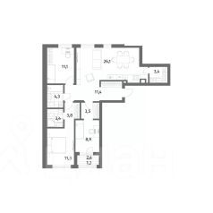 Продаётся 3-комнатная квартира в сданном доме ( Весенняя, 5), срок сдачи: I-кв. 2025, общей площадью 102.08 кв.м., на 3 этаже. Новый жилой дом от застройщика ''СЗ 75 ЛЕТ КАЛИНИНГРАДСКОЙ ОБЛАСТИ'' расположен по адресу Калининградская область, р-н Гурьевский, п Васильково, ул Весенняя, строение 1 по ГП.