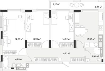 Трехкомнатная квартира — это просторное и светлое жилье, созданное для жизни без компромиссов. Три просторные изолированные комнаты позволяют каждому члену семьи иметь свое личное пространство: спальня, детская, кабинет или гостиная — все организуется легко и удобно. Благодаря увеличенному остеклению, интерьер наполняется естественным светом, визуально расширяется и создает ощущение легкости и открытости. Лоджия не только дополняет квартиру практичной зоной для хранения или отдыха.