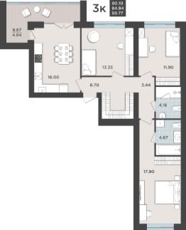 3-к, Сеченова, 26 Показать на карте