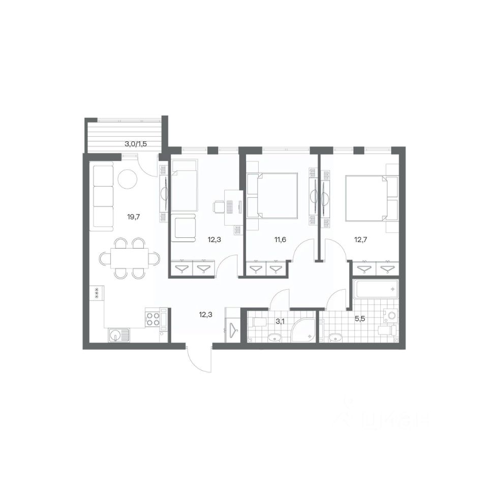 Трехкомнатные