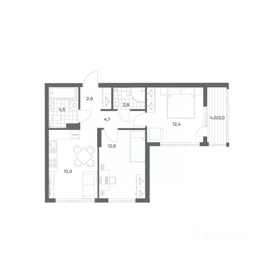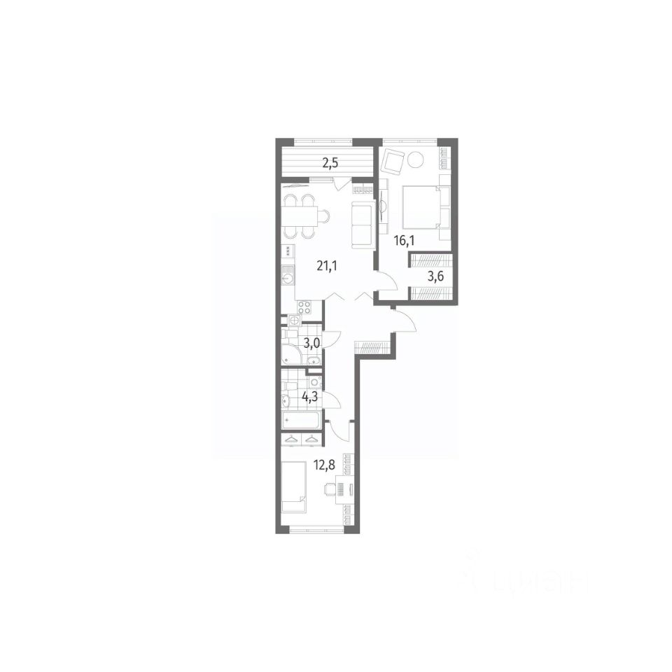 Продается квартира площадью 57.9 м² на 4 этаже 2 секции в Гагарина 30 от компании ГК ''ТРЕСТ''. Площадь кухни 19.2 м². Жилой комплекс комфорт-класса ''Гагарина 30'' расположен в Ленинградском районе Калининграда на улице Юрия Гагарина. Жилой комплекс включает в себя три корпуса высотой 9-18 этажей. Срок сдачи намечен на 1 квартал 2028 года. Жилой комплекс расположен в географическом центре города Калининград. Он знаменит Музеем янтаря, Королевскими воротами, Верхним и Нижним прудами, районами Альтштадт и Лебенихт. Из жилого квартала за 10 минут можно добраться до парков Тихий и Кальтхёфер. В жилом комплексе 457 квартир, из них 55% двух- и трёхкомнатные. Доступны варианты с просторными кухнями-гостиными, мастер-спальнями и кладовыми. На первых этажах расположены квартиры с приватными открытыми террасами. На верхних этажах лоджии с холодным остеклением, панорамными и увеличенными окнами. Высота потолков первого и последнего этажей - 3 м (кроме первого корпуса), остальных 2,72 м. Интерьеры МОП-ов выполнены в минималистичном стиле с контрастными, дополняющими друг друга материалами. Благодаря использованию светлых оттенков, природных текстур и декоративного освещения, пространство имеет большое количество света. В лифт-холле предусмотрена зона ожидания с мягкой мебелью. Почтовые ящики вынесены в тамбур, а рядом со стойкой домофона предусмотрена консоль для сумок. Дизайн-проект разработан студией Right design. Для удобства автомобилистов созданы подземные паркинги: на 125 машиномест и кладовые помещения. В паркинг можно будет спуститься на лифте комфортно людям, безопасно автомобилям!