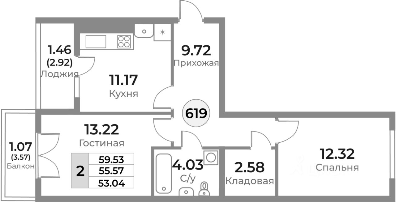 53 м² · Этаж 9 из 10