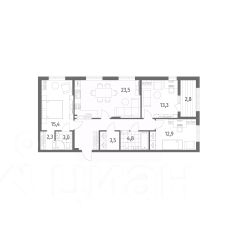 Продается квартира площадью 74.9 м² на 7 этаже 6 секции в Дом на Красной от компании ГК ''ТРЕСТ''. Площадь кухни 18.4 м². Жилой комплекс комфорт-класса ''Дом на Красной'' расположен в Центральном районе Калининграда на пересечении улиц Красная и Псковская. Жилой комплекс включает в себя два дома высотой 8 этажей. Срок сдачи намечен на 4 квартал 2026 года. Жилой комплекс ''Дом на Красной'' имеет среднюю комфортную этажность. Благодаря геометрическим формам, заложенным в архитектурный облик зданий, их конфигурация образует почти закрытую дворовую территорию. Фасад домов выполнен из комбинированных материалов (декоративная штукатурка и плитка под кирпич) в динамичном стиле с выступающими и утопленными частями и панорамными окнами. Архитектуру жилого комплекса подчеркивает декоративная подсветка фасада. В каждом подъезде созданы помещения для хранения колясок, велосипедов и спортинвентаря, которыми могут пользоваться все жильцы.Планировочные решения предусматривают квартиры с просторными кухнями-гостиными, мастер-спальнями и гардеробными. В квартирах, которые передаются покупателям без отделки (''Серый ключ''), предусмотрены открытые террасы с видом на Школьное озеро или красивый внутренний двор, панорамные окна, лоджии с холодным остеклением, потолки высотой 2,72 м. Для удобства автомобилистов созданы подземные паркинги: на 136 машиномест и кладовые помещения. В паркинг можно будет спуститься на лифте комфортно людям, безопасно автомобилям!