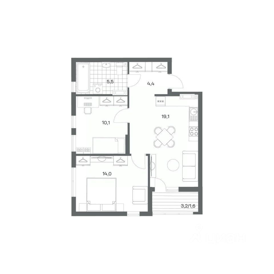 Продается квартира площадью 54.7 м² на 4 этаже 1 секции в Гагарина 30 от компании ГК ''ТРЕСТ''. Площадь кухни 19.1 м². Жилой комплекс комфорт-класса ''Гагарина 30'' расположен в Ленинградском районе Калининграда на улице Юрия Гагарина. Жилой комплекс включает в себя три корпуса высотой 9-18 этажей. Срок сдачи намечен на 1 квартал 2028 года. Жилой комплекс расположен в географическом центре города Калининград. Он знаменит Музеем янтаря, Королевскими воротами, Верхним и Нижним прудами, районами Альтштадт и Лебенихт. Из жилого квартала за 10 минут можно добраться до парков Тихий и Кальтхёфер. В жилом комплексе 457 квартир, из них 55% двух- и трёхкомнатные. Доступны варианты с просторными кухнями-гостиными, мастер-спальнями и кладовыми. На первых этажах расположены квартиры с приватными открытыми террасами. На верхних этажах лоджии с холодным остеклением, панорамными и увеличенными окнами. Высота потолков первого и последнего этажей - 3 м (кроме первого корпуса), остальных 2,72 м. Интерьеры МОП-ов выполнены в минималистичном стиле с контрастными, дополняющими друг друга материалами. Благодаря использованию светлых оттенков, природных текстур и декоративного освещения, пространство имеет большое количество света. В лифт-холле предусмотрена зона ожидания с мягкой мебелью. Почтовые ящики вынесены в тамбур, а рядом со стойкой домофона предусмотрена консоль для сумок. Дизайн-проект разработан студией Right design. Для удобства автомобилистов созданы подземные паркинги: на 125 машиномест и кладовые помещения. В паркинг можно будет спуститься на лифте комфортно людям, безопасно автомобилям!