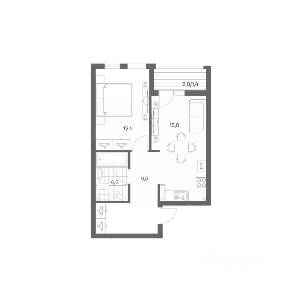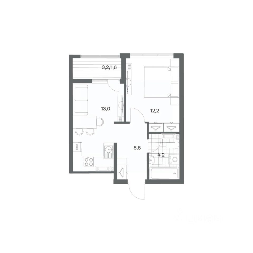 Продается квартира площадью 42.6 м² на 4 этаже 3 секции в Гагарина 30 от компании ГК ''ТРЕСТ''. Площадь кухни 15 м². Жилой комплекс комфорт-класса ''Гагарина 30'' расположен в Ленинградском районе Калининграда на улице Юрия Гагарина. Жилой комплекс включает в себя три корпуса высотой 9-18 этажей. Срок сдачи намечен на 1 квартал 2028 года. Жилой комплекс расположен в географическом центре города Калининград. Он знаменит Музеем янтаря, Королевскими воротами, Верхним и Нижним прудами, районами Альтштадт и Лебенихт. Из жилого квартала за 10 минут можно добраться до парков Тихий и Кальтхёфер. В жилом комплексе 457 квартир, из них 55% двух- и трёхкомнатные. Доступны варианты с просторными кухнями-гостиными, мастер-спальнями и кладовыми. На первых этажах расположены квартиры с приватными открытыми террасами. На верхних этажах лоджии с холодным остеклением, панорамными и увеличенными окнами. Высота потолков первого и последнего этажей - 3 м (кроме первого корпуса), остальных 2,72 м. Интерьеры МОП-ов выполнены в минималистичном стиле с контрастными, дополняющими друг друга материалами. Благодаря использованию светлых оттенков, природных текстур и декоративного освещения, пространство имеет большое количество света. В лифт-холле предусмотрена зона ожидания с мягкой мебелью. Почтовые ящики вынесены в тамбур, а рядом со стойкой домофона предусмотрена консоль для сумок. Дизайн-проект разработан студией Right design. Для удобства автомобилистов созданы подземные паркинги: на 125 машиномест и кладовые помещения. В паркинг можно будет спуститься на лифте комфортно людям, безопасно автомобилям!