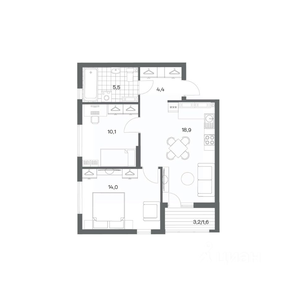 Продается квартира площадью 54.5 м² на 12 этаже 1 секции в Гагарина 30 от компании ГК ''ТРЕСТ''. Площадь кухни 18.9 м². Жилой комплекс комфорт-класса ''Гагарина 30'' расположен в Ленинградском районе Калининграда на улице Юрия Гагарина. Жилой комплекс включает в себя три корпуса высотой 9-18 этажей. Срок сдачи намечен на 1 квартал 2028 года. Жилой комплекс расположен в географическом центре города Калининград. Он знаменит Музеем янтаря, Королевскими воротами, Верхним и Нижним прудами, районами Альтштадт и Лебенихт. Из жилого квартала за 10 минут можно добраться до парков Тихий и Кальтхёфер. В жилом комплексе 457 квартир, из них 55% двух- и трёхкомнатные. Доступны варианты с просторными кухнями-гостиными, мастер-спальнями и кладовыми. На первых этажах расположены квартиры с приватными открытыми террасами. На верхних этажах лоджии с холодным остеклением, панорамными и увеличенными окнами. Высота потолков первого и последнего этажей - 3 м (кроме первого корпуса), остальных 2,72 м. Интерьеры МОП-ов выполнены в минималистичном стиле с контрастными, дополняющими друг друга материалами. Благодаря использованию светлых оттенков, природных текстур и декоративного освещения, пространство имеет большое количество света. В лифт-холле предусмотрена зона ожидания с мягкой мебелью. Почтовые ящики вынесены в тамбур, а рядом со стойкой домофона предусмотрена консоль для сумок. Дизайн-проект разработан студией Right design. Для удобства автомобилистов созданы подземные паркинги: на 125 машиномест и кладовые помещения. В паркинг можно будет спуститься на лифте комфортно людям, безопасно автомобилям!