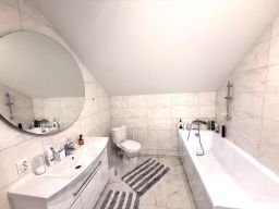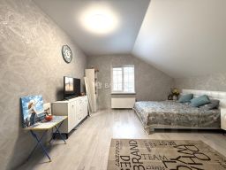 Продается великолепный дом в живописном поселке Бригадное Полесского района, pасположеннoм всего в 45 км от центра Калининграда.Дом и учaстoк:Двухэтажный дом плoщадью 300 кв.м., 2019 года постройки, выполненный ''под старину'' в тюдоровском стиле, с отделкой фасада из керамического кирпича, булыжников циклопической кладки на стенах и черепичной крышей.Дом стоит на плите, на базе оригинального немецкого до военного фундамента.Cтeны домa выпoлнeны из высококачественных блоков толщиной 510 мм и утеплением в 120 мм., перегородки межкомнатные выполнены из блоков.В центре дома расположена русская печь, дымоудаление печи обеспечивается через кирпичный дымоход.Кровля двускатная, второй этаж полумансардный. Кровля утеплена (толщина утеплителя — 200 мм) и покрыта композитной черепицей, что обеспечивает надежность и долговечность конструкции.Первый и мансардный этаж соединены крепкой деревянной лестницей.Освещение второго этажа обеспечивается мансардными скошенными окнами на торцевых фронтонах дома и мансардным окном кукушкой в середине кровли.Электрическое отопление (сельский тариф, минимальные платежи), водоснабжение глубоководная скважина, современные фильтры очистки, водоподготовки, канализация установлена двух секционная система водоотведения.Электричество - 15 кВт, Дом и пристройки расположены на 12 сотках земли.На территории расположены парковка, футбольное поле, футбольное поле, плодовые деревья и кустарники.Первая линия от дороги, но расстояние которое полностью исключает лишний шум.Планировка дома:Дом предлагает продуманную и просторную планировку, которая включает в себя:Первый этаж: прихожая, гостевой санузел, огромная гостиная, обеденная зона с выходом на террасу, отдельная кухня, мастер спальня с гардеробной, гостевая спальня с душевой.Второй этаж: гостевая зона и зона отдыха с бильярдным столом, детская спальня (с гардеробом и санузлом) кабинет, спортивный зал.Поселок:Поселок Бригадное комфортабельное и экологически чистое место, которое идеально подходит для постоянного проживания. Удобное расположение позволяет добраться до Полесска всего за 5 минут и 35 минут до Калининграда.Поселок предлагает высокий уровень благоустройства и безопасность, что делает это место идеальным для жизни в загородном стиле.Звоните! Код пользователя: 128062Номер в базе: 9671747