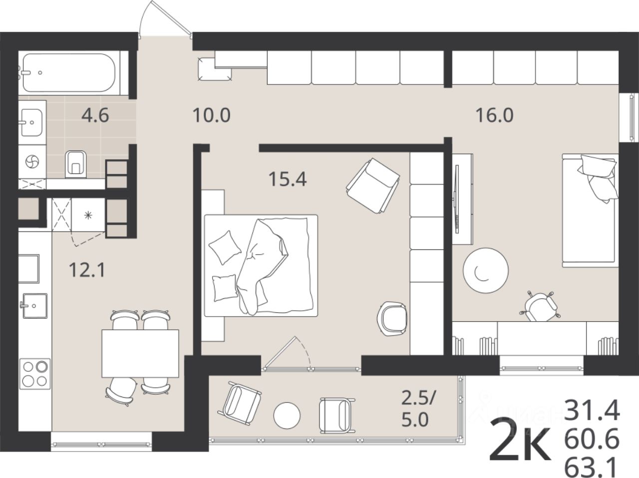 60 м² · Этаж 2 из 9