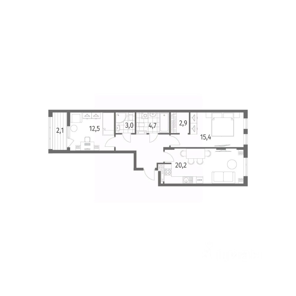 49 м² · Этаж 15 из 15