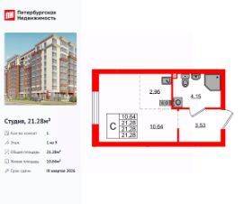 Продается уютная студия от застройщика в жилом комплексе ''Консул'' в Ленинградском районе.Удобная, классическая, функциональная европланировка, большая кухня-гостиная 2.96 м², просторная прихожая 3.53 м². Общая площадь студии - 21.28 м², жилая 10.64 м², высота потолка 2.7 м.Квартира продается с отделкой ''Серый ключ с возможностью дозаказа NORD LINE ++''.Что особенного в ЖК ''Консул''?• Развитая инфраструктура• Двор без машин• Закрытая, огороженная территория• Квартиры с отделкой - заезжай и живи• Детские площадки для детей разных возрастов• Подземный паркинг и кладовые помещения