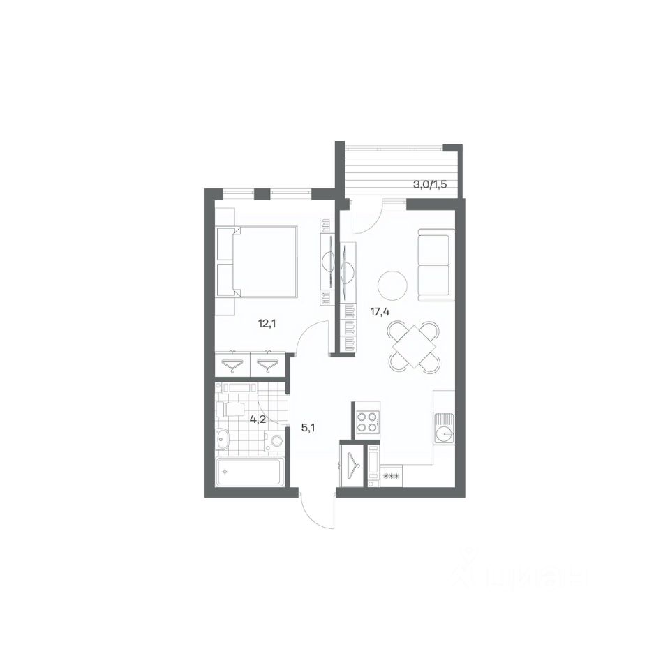 Продается квартира площадью 40.3 м² на 3 этаже 2 секции в Гагарина 30 от компании ГК ''ТРЕСТ''. Площадь кухни 17.4 м². Жилой комплекс комфорт-класса ''Гагарина 30'' расположен в Ленинградском районе Калининграда на улице Юрия Гагарина. Жилой комплекс включает в себя три корпуса высотой 9-18 этажей. Срок сдачи намечен на 1 квартал 2028 года. Жилой комплекс расположен в географическом центре города Калининград. Он знаменит Музеем янтаря, Королевскими воротами, Верхним и Нижним прудами, районами Альтштадт и Лебенихт. Из жилого квартала за 10 минут можно добраться до парков Тихий и Кальтхёфер. В жилом комплексе 457 квартир, из них 55% двух- и трёхкомнатные. Доступны варианты с просторными кухнями-гостиными, мастер-спальнями и кладовыми. На первых этажах расположены квартиры с приватными открытыми террасами. На верхних этажах лоджии с холодным остеклением, панорамными и увеличенными окнами. Высота потолков первого и последнего этажей - 3 м (кроме первого корпуса), остальных 2,72 м. Интерьеры МОП-ов выполнены в минималистичном стиле с контрастными, дополняющими друг друга материалами. Благодаря использованию светлых оттенков, природных текстур и декоративного освещения, пространство имеет большое количество света. В лифт-холле предусмотрена зона ожидания с мягкой мебелью. Почтовые ящики вынесены в тамбур, а рядом со стойкой домофона предусмотрена консоль для сумок. Дизайн-проект разработан студией Right design. Для удобства автомобилистов созданы подземные паркинги: на 125 машиномест и кладовые помещения. В паркинг можно будет спуститься на лифте комфортно людям, безопасно автомобилям!