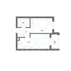 Продается квартира площадью 36.9 м² на 2 этаже 1 секции в River Park от компании ГК ''ТРЕСТ''. Площадь кухни 15.3 м².