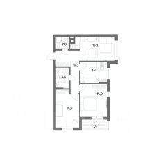 Продается квартира площадью 70.2 м² на 1 этаже 1 секции в River Park от компании ГК ''ТРЕСТ''. Площадь кухни 12.6 м².