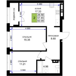 Продаётся 2-комнатная квартира в строящемся доме (Дом 1), срок сдачи: III-кв. 2026, общей площадью 53.21 кв.м., на 1 этаже. Современный жилой 7-ми этажный дом в сердце города. Несмотря на близость к центру, здесь всегда тихо и безопасно. Все рядом - магазины, садик и обучающая гимназия. Идеальное место для семей, ценящих комфорт и удобство в сочетании с городской инфраструктурой. В доме просторные квартиры с современными планировками, а из окон открываются живописные виды на окружающий пейзаж.