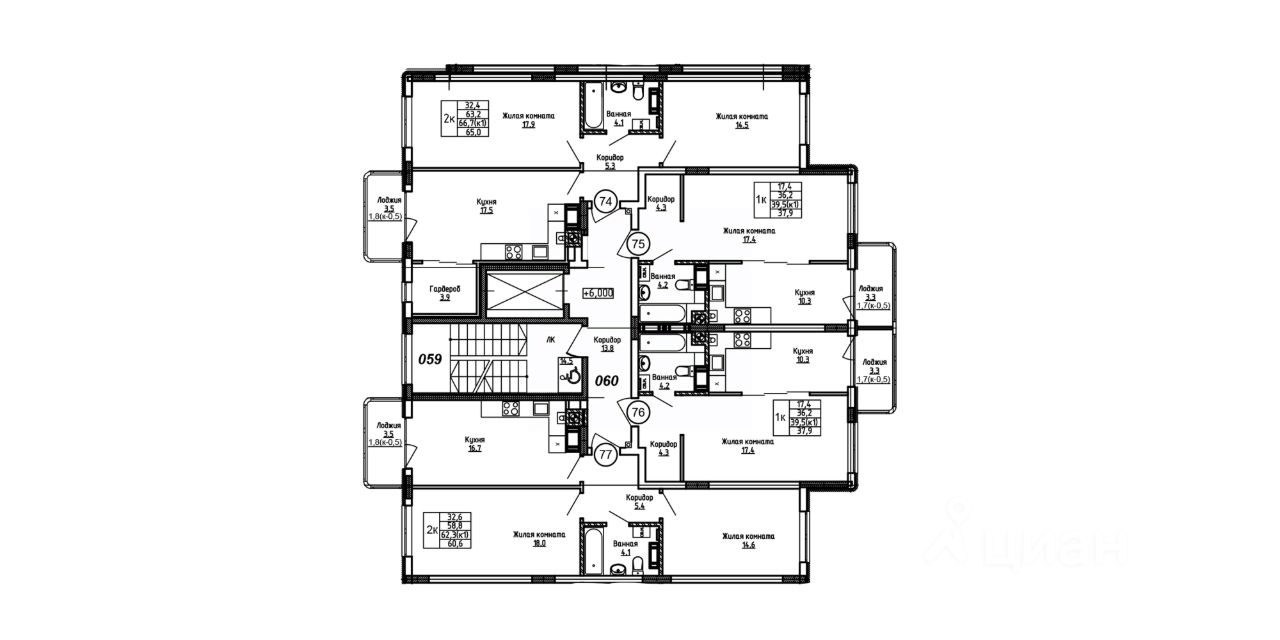 Продается квартира площадью 75 м² на 6 этаже 4 секции в Гагарина 30 от компании ГК ''ТРЕСТ''. Площадь кухни 15.4 м². Жилой комплекс комфорт-класса ''Гагарина 30'' расположен в Ленинградском районе Калининграда на улице Юрия Гагарина. Жилой комплекс включает в себя три корпуса высотой 9-18 этажей. Срок сдачи намечен на 1 квартал 2028 года. Жилой комплекс расположен в географическом центре города Калининград. Он знаменит Музеем янтаря, Королевскими воротами, Верхним и Нижним прудами, районами Альтштадт и Лебенихт. Из жилого квартала за 10 минут можно добраться до парков Тихий и Кальтхёфер. В жилом комплексе 457 квартир, из них 55% двух- и трёхкомнатные. Доступны варианты с просторными кухнями-гостиными, мастер-спальнями и кладовыми. На первых этажах расположены квартиры с приватными открытыми террасами. На верхних этажах лоджии с холодным остеклением, панорамными и увеличенными окнами. Высота потолков первого и последнего этажей - 3 м (кроме первого корпуса), остальных 2,72 м. Интерьеры МОП-ов выполнены в минималистичном стиле с контрастными, дополняющими друг друга материалами. Благодаря использованию светлых оттенков, природных текстур и декоративного освещения, пространство имеет большое количество света. В лифт-холле предусмотрена зона ожидания с мягкой мебелью. Почтовые ящики вынесены в тамбур, а рядом со стойкой домофона предусмотрена консоль для сумок. Дизайн-проект разработан студией Right design. Для удобства автомобилистов созданы подземные паркинги: на 125 машиномест и кладовые помещения. В паркинг можно будет спуститься на лифте комфортно людям, безопасно автомобилям!