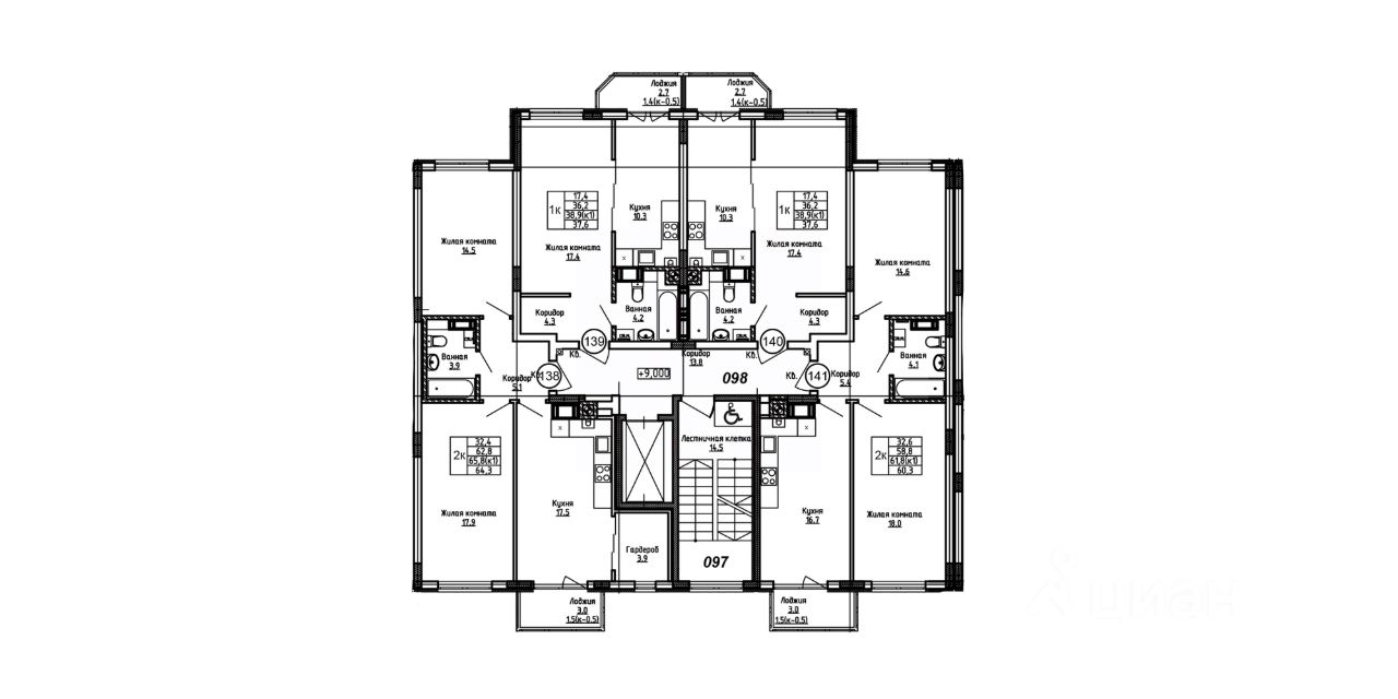 34 м² · Этаж 9 из 9