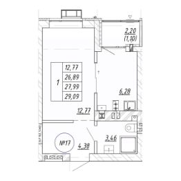 Продаётся 1-комнатная квартира в строящемся доме (Дом 16.2), срок сдачи: II-кв. 2028, общей площадью 28.81 кв.м., на 1 этаже. Новый жилой комплекс ''Яркий'' от застройщика ''СтройИнвестиция'' расположен по адресу: Калининградская обл., г. Зеленоградск, ул. Центральная улица.