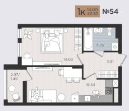 Продаётся 1-комнатная квартира в строящемся доме (Дом 4), срок сдачи: I-кв. 2027, общей площадью 54.11 кв.м., на 2 этаже. Новые жилые дома от Специализированного застройщика ''Самолет Калининград Плюс'' расположены в г. Калининград на ул. Советский проспект.
