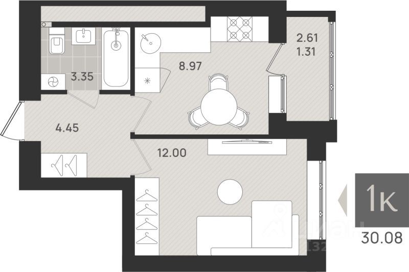 30 м² · Этаж 8 из 9