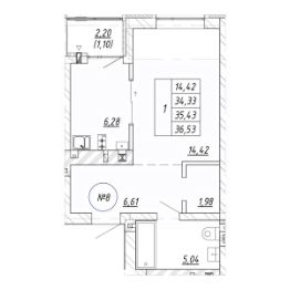 Продаётся 1-комнатная квартира в строящемся доме (Дом 16.2), срок сдачи: II-кв. 2028, общей площадью 36.99 кв.м., на 3 этаже. Новый жилой комплекс ''Яркий'' от застройщика ''СтройИнвестиция'' расположен по адресу: Калининградская обл., г. Зеленоградск, ул. Центральная улица.