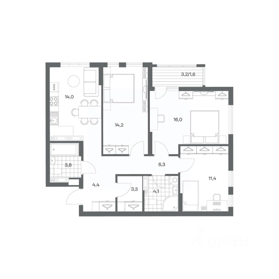 Трехкомнатные