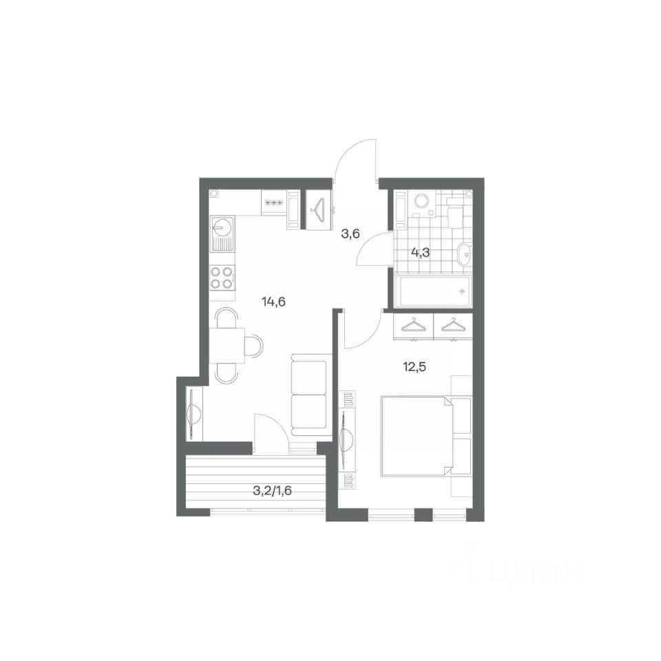 Продается квартира площадью 36.6 м² на 3 этаже 3 секции в Гагарина 30 от компании ГК ''ТРЕСТ''. Площадь кухни 14.6 м². Жилой комплекс комфорт-класса ''Гагарина 30'' расположен в Ленинградском районе Калининграда на улице Юрия Гагарина. Жилой комплекс включает в себя три корпуса высотой 9-18 этажей. Срок сдачи намечен на 1 квартал 2028 года. Жилой комплекс расположен в географическом центре города Калининград. Он знаменит Музеем янтаря, Королевскими воротами, Верхним и Нижним прудами, районами Альтштадт и Лебенихт. Из жилого квартала за 10 минут можно добраться до парков Тихий и Кальтхёфер. В жилом комплексе 457 квартир, из них 55% двух- и трёхкомнатные. Доступны варианты с просторными кухнями-гостиными, мастер-спальнями и кладовыми. На первых этажах расположены квартиры с приватными открытыми террасами. На верхних этажах лоджии с холодным остеклением, панорамными и увеличенными окнами. Высота потолков первого и последнего этажей - 3 м (кроме первого корпуса), остальных 2,72 м. Интерьеры МОП-ов выполнены в минималистичном стиле с контрастными, дополняющими друг друга материалами. Благодаря использованию светлых оттенков, природных текстур и декоративного освещения, пространство имеет большое количество света. В лифт-холле предусмотрена зона ожидания с мягкой мебелью. Почтовые ящики вынесены в тамбур, а рядом со стойкой домофона предусмотрена консоль для сумок. Дизайн-проект разработан студией Right design. Для удобства автомобилистов созданы подземные паркинги: на 125 машиномест и кладовые помещения. В паркинг можно будет спуститься на лифте комфортно людям, безопасно автомобилям!