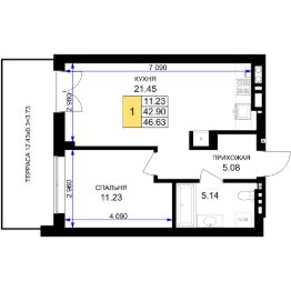 Квартира: 1 к 46,80 кв.м., 6 этаж в комплексе Аэро, 1 очередь, корп.A, сдача: 3кв. , этажей: 7, адрес Малое Исаково п., Первая ул., д. 1 корп 1, Застройщик: ГК Расцвет.Жилой комплекс комфорт-класса расположен в Гурьевском городском округе в поселке Малое Исаково. Расположение дает новую, только построенную инфраструктуру: всё, что нужно, находится близко, но рядом нет ничего лишнего.В основу жилого комплекса легла концепция современного, технологичного аэропорта с уютом престижного отеля. Каждый корпус носит название ''Терминала'', чтобы максимально погрузить в атмосферу технологичного аэропорта, из которого не хочется улетать.Уютный и просторный охраняемый двор без машин с круглосуточной системой видеонаблюдения обеспечивает безопасность ребёнка и избавляет родителей от лишних тревог. Экологичные материалы, вертикальное озеленение и мягкая подсветка продолжают окружающие комплекс природные ландшафты. Богатый выбор декоративных растений различной высоты создает приятный эмоциональный фон и свежую атмосферу в безопасных дворах без машин. Пергола с зоной для барбекю - небанальная зона отдыха, где можно устроить яркий праздник с барбекю для всей семьи или лучших друзей. Спортивная площадка с тренажерами для воркаута, окруженная зеленью подойдет для тренировок на открытом воздухе. Пространство для выгула домашних животных оборудовано всем необходимым.Велосипед или электросамокат можно спокойно оставлять в зоне специальной парковки между этажами, где за ними наблюдает камера. После прогулок с младенцем коляску не обязательно поднимать в квартиру - хранить её можно в закрытой колясочной.Предусмотрено рабочее пространство на территории и внутри комплекса с розетками и WiFi, где удобно быть на ''удалёнке''. Коворкинг - идеальное место, где можно уединиться для продуктивной работы или деловых встреч. Жилой комплекс комфорт-класса расположен в Гурьевском городском округе в поселке Малое Исаково. Расположение дает новую, только построенную инфраструктуру: всё, что нужно, находится близко, но рядом нет ничего лишнего.В основу жилого комплекса легла концепция современного, технологичного аэропорта с уютом престижного отеля. Каждый корпус носит название ''Терминала'', чтобы максимально погрузить в атмосферу технологичного аэропорта, из которого не хочется улетать.Уютный и просторный охраняемый двор без машин с круглосуточной системой видеонаблюдения обеспечивает безопасность ребёнка и избавляет родителей от лишних тревог. Экологичные материалы, вертикальное озеленение и мягкая подсветка продолжают окружающие комплекс природные ландшафты. Богатый выбор декоративных растений различной высоты создает приятный эмоциональный фон и свежую атмосферу в безопасных дворах без машин. Пергола с зоной для барбекю - небанальная зона отдыха, где можно устроить яркий праздник с барбекю для всей семьи или лучших друзей. Спортивная площадка с тренажерами для воркаута, окруженная зеленью подойдет для тренировок на открытом воздухе. Пространство для выгула домашних животных обо