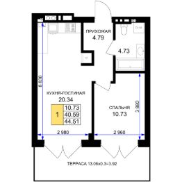 Продаётся 1-комнатная квартира в строящемся доме (Дом 8 (2 очередь)), срок сдачи: III-кв. 2027, общей площадью 44.51 кв.м., на 1 этаже. Новый жилой комплекс ''Включи'' от застройщика ''СпецСтройКубань'' расположен в г. Гурьевск в районе Гурьевского шоссе.