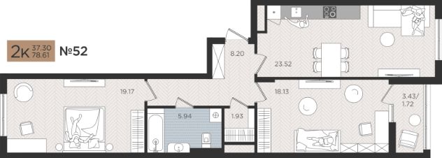 Продаётся 2-комнатная квартира в строящемся доме (Дом 3), срок сдачи: III-кв. 2026, общей площадью 78.61 кв.м., на 2 этаже. Новые жилые дома от Специализированного застройщика ''Самолет Калининград Плюс'' расположены в г. Калининград на ул. Советский проспект.