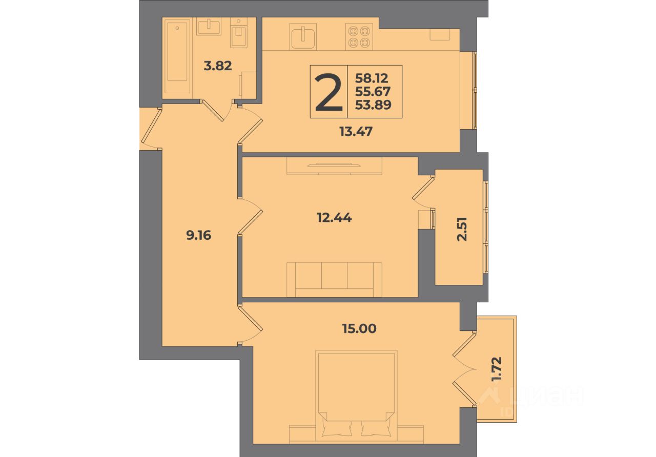 58 м² · Этаж 8 из 8