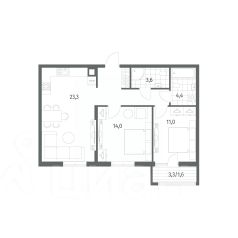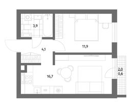 Продается квартира площадью 36.9 м² на 2 этаже 1 секции в River Park от компании ГК ''ТРЕСТ''. Площадь кухни 15.7 м².