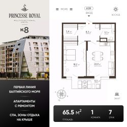 Акция КВАРТИРНИК К8.Цена действует при 100% оплате (в т.ч. ипотекой без субсидирования) или рассрочке до 6 месяцев и первоначальном взносе от 50%. Срок действия акции с 18.11.26-07.02.26.Акция не суммируется ни с какими другими акциями на сайте.ПРИНЦЕСС РОЯЛ (PRINCESSE ROYAL)Эксклюзивные апартаменты на первой линии в ЗеленоградскеЭлитный мультифункциональный отель ''PRINCESSE ROYAL'' расположился в курортном Зеленоградске, прямо на променаде Балтийского моря. В продаже апартаменты на 5-7 этажах. Апартаменты будут реализованы только с дизайнерским ремонтом и в полной комплектации. После ввода объекта, недвижимость можно будет отдать под управление профессиональной управляющей компании и извлекать пассивный доход.Из каждого апартамента открывается завораживающий вид на Балтийское море. Панорамное остекление позволяет наслаждаться морскими пейзажами и закатами, не выходя из дома, а продуманная планировка делает пространство максимально функциональным.Срок сдачи - 3 квартал 2027 года.На территории комплекса расположатся: отель, оздоровительный SPA-комплекс с открытыми и закрытыми бассейнами, комплекс бань, семейный ресторан на первом этаже, ресторан высокой кухни на эксплуатируемой кровле, магазины,конференц-зал, спортзал, источники с лечебно-столовой минеральной водой, поступающей из скважин Королевы Луизы. В зоне ресепшн для вашего комфортного пребывания будет работать сервис 24/7, предоставляющий полный спектр услуг. Подземный паркинг будет сдаваться в аренду.''PRINCESSE ROYAL'' окружает безупречная инфраструктура! Сделайте шаг из дома — и вы на променаде, сразу же спуск к морю. Всего 3 минуты неспешной прогулки — и вы в сердце Зеленоградска. На автомобиле: 5 мин до Куршской косы, 20 мин до аэропорта Храброво, 30 мин до центра Светлогорска, 35 мин до центра Калининграда.Покупка происходит посредством заключения договора долевого участия. Действует классическая программа ипотеки, рассрочка от застройщика или 100% оплата за собственные средства. Помощь с оформлением сделки от ипотечного брокера и юристов застройщика.Больше подробностей вы можете узнать по телефону отдела продаж. Звоните!Не является публичной офертой, предложение ограничено, оценивайте свои финансовые возможности и риски. Застройщик: ООО СЗ Компас. Проектная декларация размещена на сайте наш.дом.рф. Сроки, условия проведения акций и актуальные цены на сайте девелопера. Когда вы выбираете недвижимость от К8 — вы выбираете комфортную, продуманную и растущую в цене среду для жизни или инвестиций.Что вы получаете:1. Недвижимость, которая дорожает: каждый проект создаётся так, чтобы его ценность росла. Вы покупаете актив, который работает на вас.2. Продуманные концепции: вы живете в пространстве с идеей, смыслом и логикой - где каждая деталь служит вашему удобству.3. Настоящий комфорт: планировки, которые экономят место и время. Дома, где технические решения подчинены вашему образу жизни.4. Эстетику, которая радует каждый день: архитектура, на которую приятно