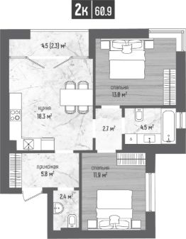 2-к, Морена ЖК, 19.1 Показать на карте
