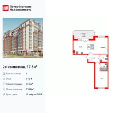 Продаётся 2-комнатная квартира в сданном доме (Дом 3 (1 этап)), срок сдачи: IV-кв. 2025, общей площадью 56.89 кв.м., на 3 этаже. Новый жилой комплекс ''Суздальский-3'' от Группы компаний ''Модуль-Стройград'' расположен в Ленинградском районе Калининграда на улице Суздальской.