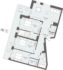 Продаются 4-комнатные апартаменты в строящемся доме (Дом 1), срок сдачи: IV-кв. 2026, общей площадью 105.5 кв.м., на 4 этаже. Новая гостиница с апартаментами от застройщика ''Калининградстройинвест'' расположена в г. Пионерский Калининградской области на ул. Комсомольская.